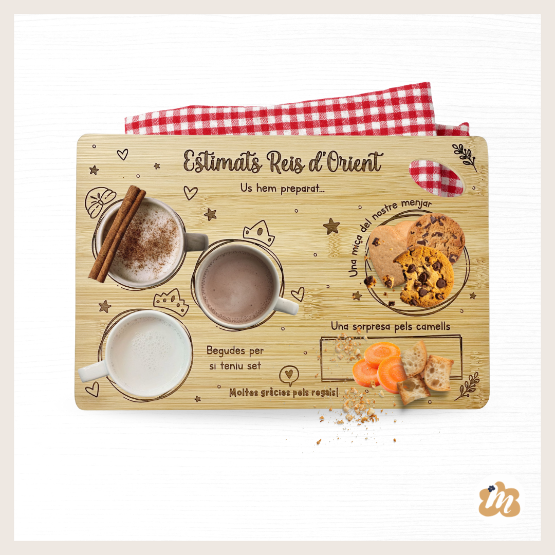 Un detalle lleno de ilusión para preparar antes de dormir, con espacio para dejar la bebida y la comida tanto para ellos como para los renos y camellos.