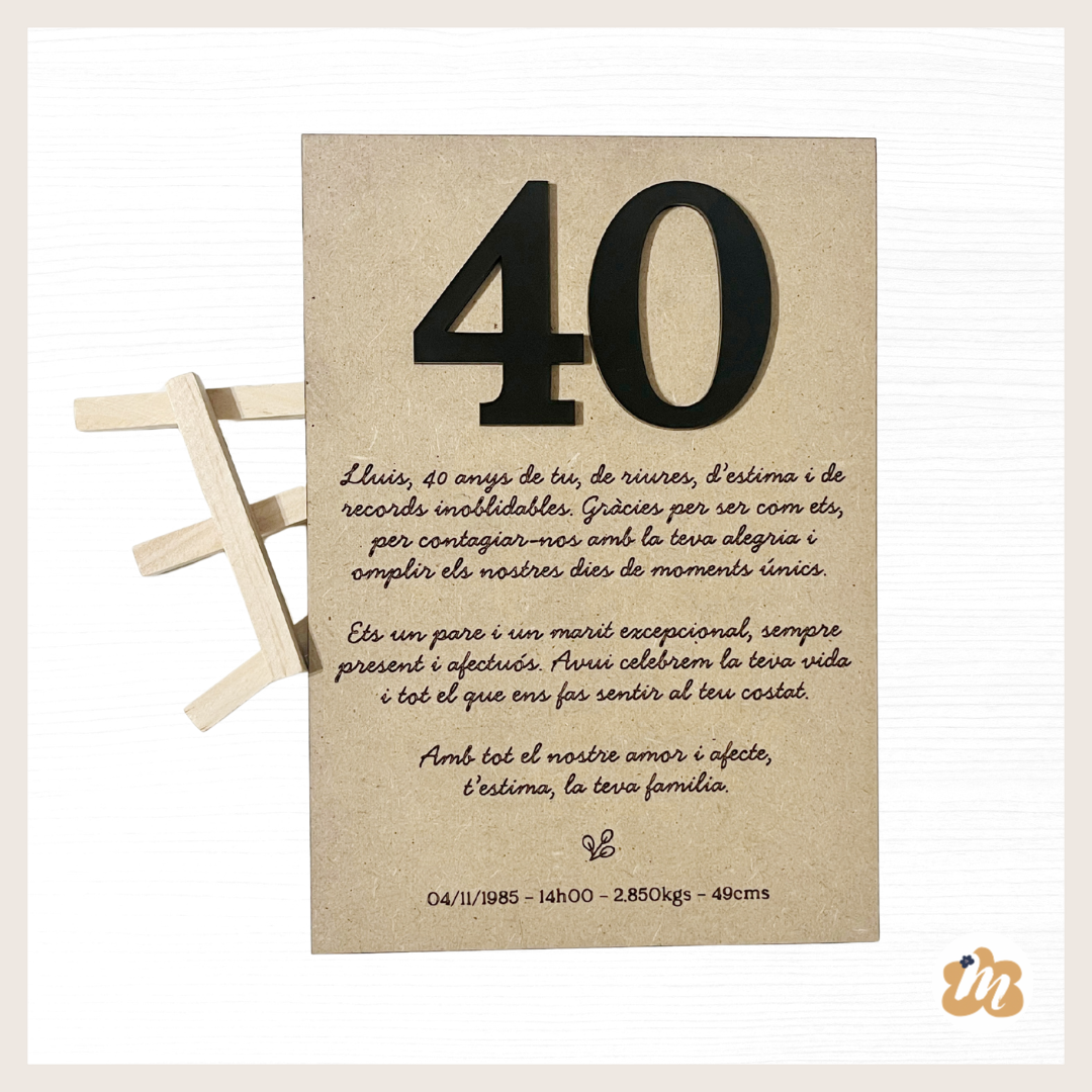 Esta lámina de madera en tamaño A5, acompañada de su caballete de madera a conjunto, es un detalle decorativo cuidado y especial, ideal para todo tipo de ocasiones.