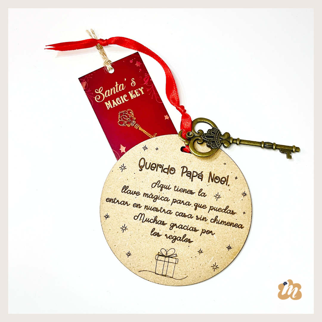 🗝️ Disco de madera con llave mágica – Papá Noel o Reyes Magos